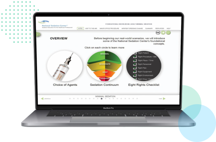 The National Sedation Center certification program was designed and developed by healthcare professionals dedicated to improving patient safety by providing comprehensive, evidence-based education for the non-anesthesia healthcare provider who is administering sedation outside of the operating room.